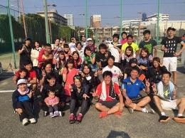 基本的に毎週月曜日、柴島テニスコート、20〜22時で活動しております。1回の練習は20名が定員で、20時からアップ、形式練習、21時から試合という流れでしています。レベルは男女共に中級以上です。男子もコーチ経験者も多く、練習中にコーチングも可能です。メンバーの年齢層は22〜33歳(平均27歳)、総勢約70名、男女比5:5の構成です。他サークルと合同練習や対抗戦なども企画しています。インスタもやっているのでcharlesと検索していただけたらでてきます。主に練習風景を載せています。